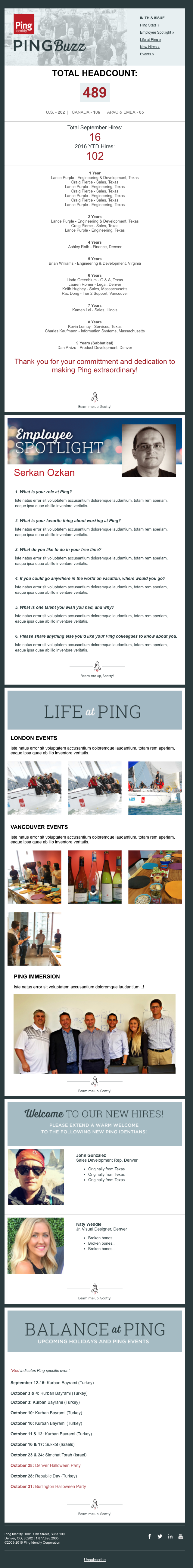Following are a few responsive email templates, as well as a few client designs for sales representatives, and landing pages for links from the emails.