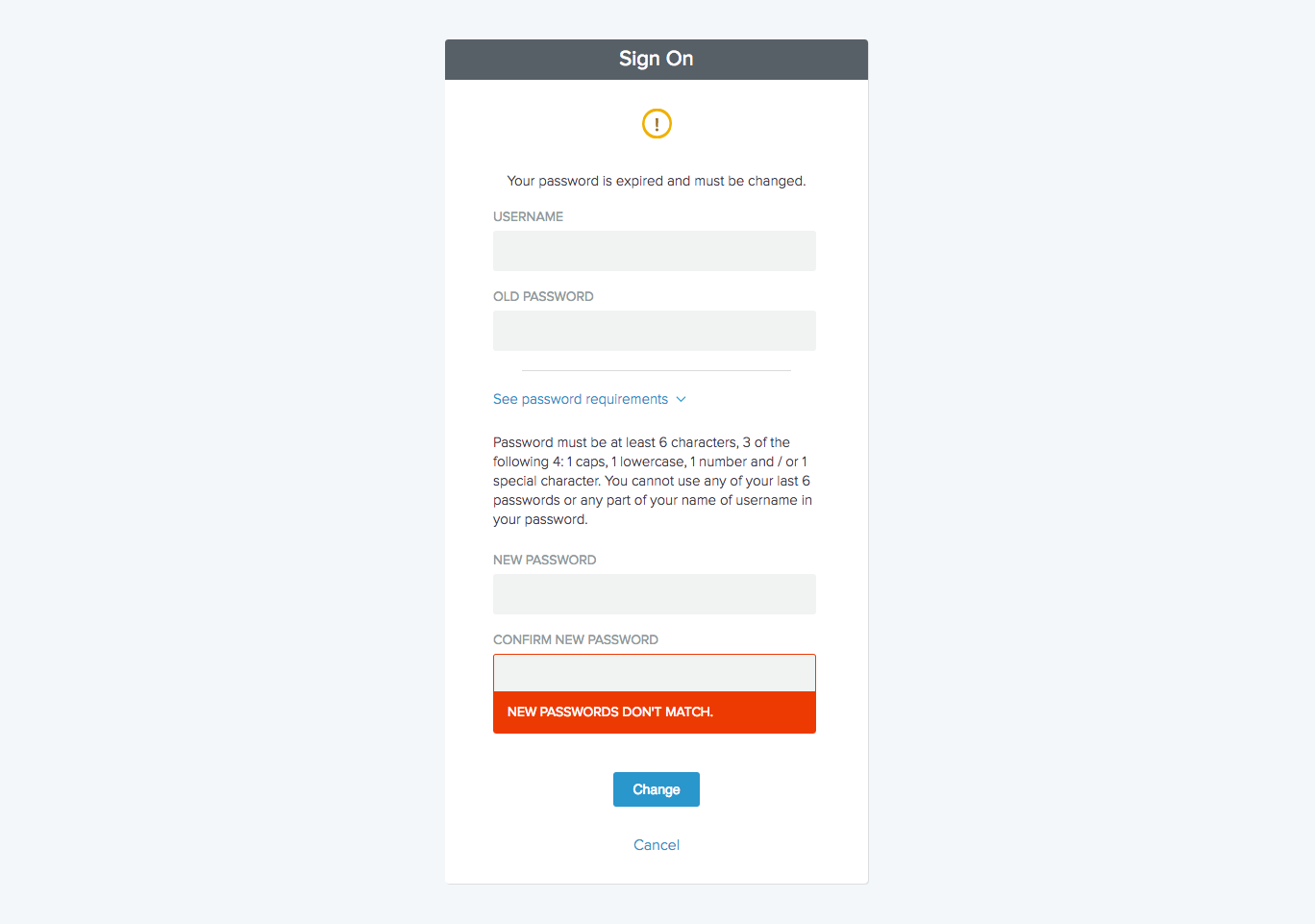 Many of these pages were interim or MFA pages that are displayed after the sign on process, and before proceeding to the intended site. For almost all, I wrote the majority of the CSS, HTML and JS.